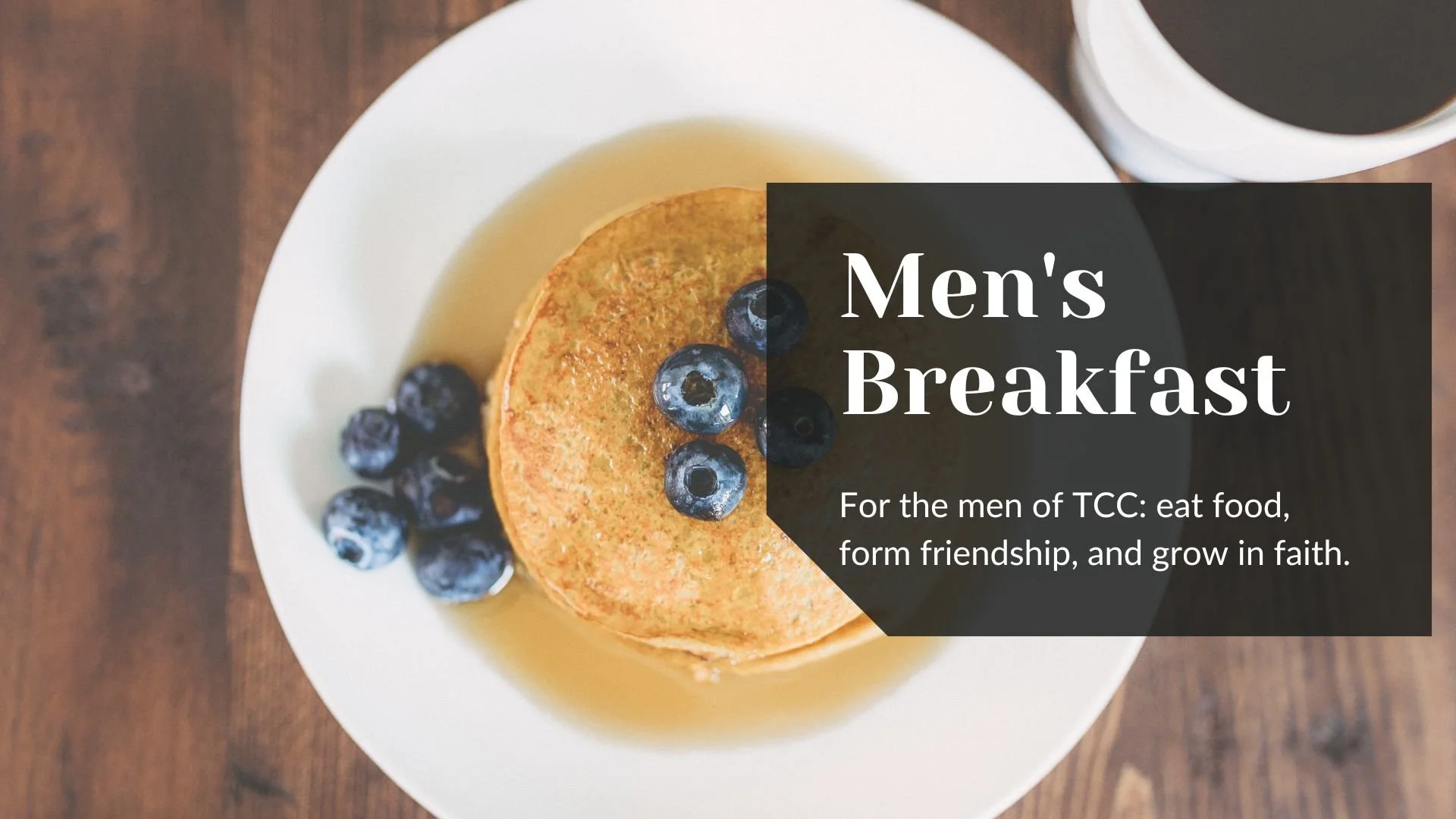 Once a month, the men of TCC gather for a simple but meaningful morning: a hearty breakfast, a 20–30 minute talk connecting faith with everyday life, and open conversation around the tables.